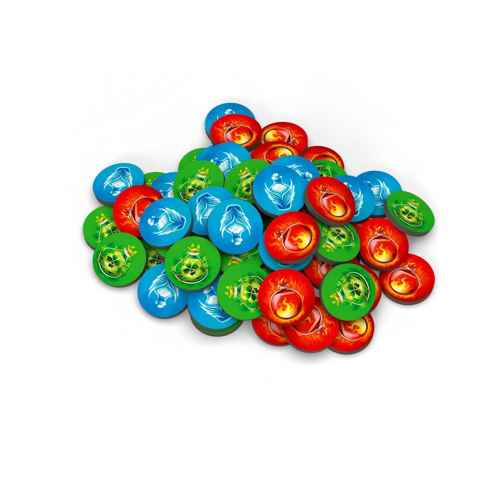Alchemist apprentices brew potions and work on discovering secrets of alchemy.Will you surpass your teachers' knowledge and grow up to become the best alchemists in the land? Let's find out! It's time to grab your potion ingredients, sharpen your deduction skills, and get mixing!Little Alchemists is a family-friendly deduction game that's designed to grow with the curious minds of young players. The game starts with simple concepts and mechanisms; you'll start by gathering and combining ingredients for brewing potions to sell. However, as you collect keys by achieving your potion-making goals, you'll unlock new chapters that gradually add more components, mechanisms, and complexity to the experience.Not sure how to make potions? No sweat! Potion craft takes mere seconds with the free Little Alchemists companion app. To make a potion, players select two ingredient tiles, then scan them using the companion app loaded onto a tablet or smartphone. This reveals the combined result and lets players acquire and mark the corresponding potion knowledge on their secret player board.With each potion you make, you'll begin to discover the secrets that lie at the heart of alchemy. Players will have to use clever deductions to figure out the arcane properties of each ingredient, then they can use that knowledge to their advantage throughout the game!Over the course of seven chapters that unlock over multiple playthroughs, players will learn and master many new facets of the alchemy trade, preparing them for what's to come. Each chapter is designed as a replayable experience that expands on the previous chapter, with new layers of game mechanisms that add more subtle depth and complexity over time. Also, fully exploring the world of Little Alchemists will introduce you to many of the concepts from and better prepare you for the original Alchemists game.*Contents:** game board* 4 screens with shelves for scanning ingredients* 4 (double layered) markup triangles* potion markup tokens* 36 ingredient tiles* 4 customer tiles* coin tokens* 4 plastic flasks in player colours* rulebook* 6 boxes with surprise content that expand the game*Features:** Gather ingredients, and brew and sell potions, all based on experimentation and ingredient deduction* Scan ingredients to craft unique potion combinations with a tablet or smartphone* Unlock new chapters across multiple replays — each layers on new mechanics and complexity to expand the core experience.* A great primer on the basic concepts of Alchemists — once you’ve mastered Little Alchemists, you should be ready to try out the original euro game!* Players: 2–4* Playtime: 15–30 Minutes* Ages: 7+