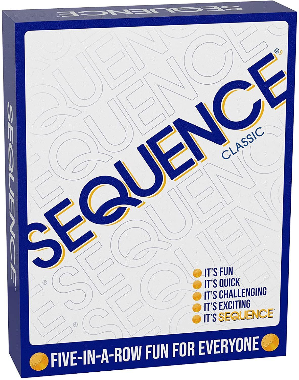 It's fun, it's challenging, it's exciting, it's SEQUENCE! Play a card from your hand, and place a chip on a corresponding space on the game board. When you have five in a row, it's a SEQUENCE. Learn to block your opponents or remove their chips, and watch out for the Jacks – they're wild! With a little strategy and luck, you'll be a winner.Play a card from your hand, and place a chip on a corresponding space on the game board. When you have five in a row, it’s a SEQUENCE. Block your opponents or remove their chips. The first player or team with the required number of SEQUENCES wins