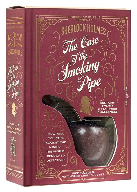 In one of Holmes’ most extraordinary cases to date, it appears that thesuspect has cleverly evaded capture. The fiend, however, has imparted a smallbut significant clue – a smouldering pipe left at the scene of the crime.Help Holmes identify the tobacco and reveal the identity of his scheming foe byremoving the tobacco before it crumbles to ash. Comes with a pack of cardsoutlining the challenges
