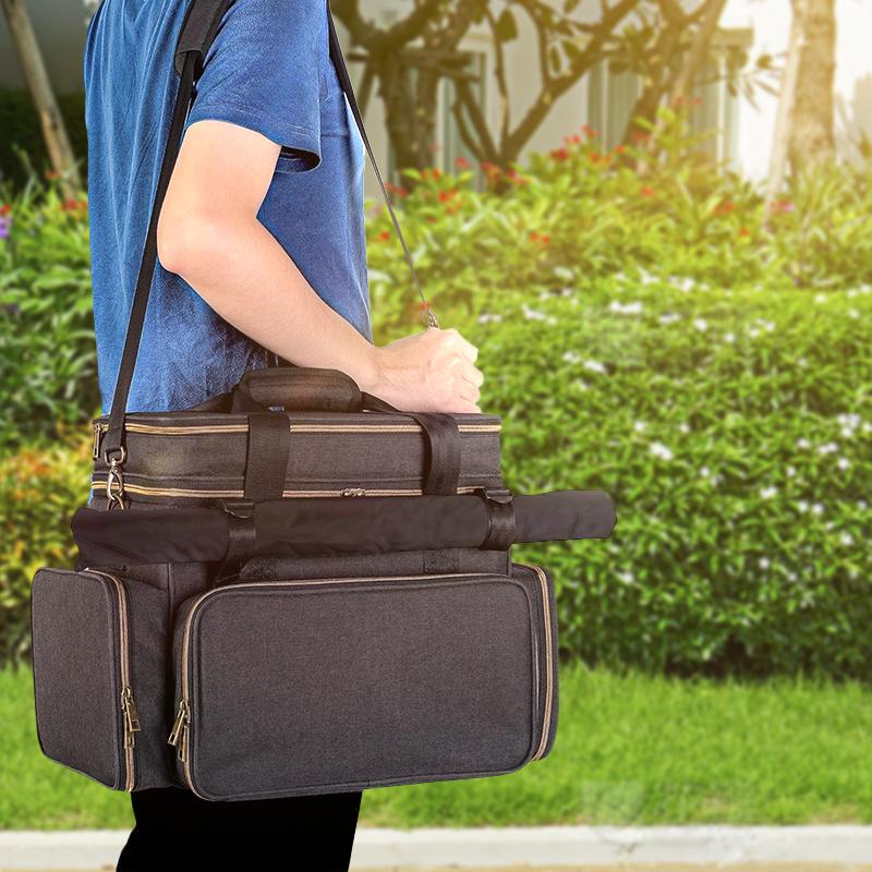 *STORFEX TTRPG Adventurer's Bag – Large**Elevate your TTRPG experience*Specially designed for TTRPG enthusiasts. With high-capacity storage space and specialized compartments, this bag ensures you have everything you need for your gaming sessions.*High Capacity Storage:*The main compartment offers ample space for 6–8 books, folders, dice trays, and screens. Adjustable padded dividers help customize the storage to your needs.*Miniatures Storage Case:*The top compartment features protective foam for mini figures, with 22 pre-cut foam sections for NPCs, enemies, and monsters.*Battle Mat Storage Belt:*Conveniently carry your battle mat with the built-in storage belt (Map and map sleeve not included).*Multiple Pockets:*Front and side compartments with elastic loops for erase markers, sand timers, spray bottles, dice pouches, and more.*Reinforced Design:*Reinforced padded handle and adjustable/removable shoulder strap ensure durability and comfort during transport.*Perfect Gift:*Ideal for RPG players and game masters, this bag makes a perfect gift for any TTRPG enthusiast.*_Tip: This bag features a classic metal zipper. Ensure proper alignment when zipping and consider using lubricant if the zipper gets stuck._**Technical Specifications*Colour: BlackMaterial: Polyester, MetalSize: 43×25×33cmWeight: 1.73kgPackage Contents:1 x STORFEX TTRPG Adventurer's Bag1 x Removable Shoulder Strap