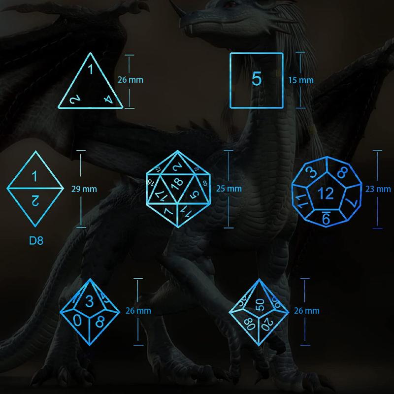 *_SUPREMTEK Rechargeable LED Dice Set-Shake to Light Up_**Elevate your gaming sessions*These fully upgraded LED dice bring convenience and excitement to your table top games. With 7 black dice included in the set, immerse yourself in an enhanced gaming experience like never before.*Rechargeable Design:*These LED dice now feature a rechargeable design for added convenience. Simply charge them using the included charging box and charging cable, compatible with power banks, adapters, and computers.*Immersive Gameplay:*Experience the thrill of gaming with dice that automatically light up and go out upon collision or roll. The upgraded dice blink for 20 seconds per roll, ensuring a durable and immersive gaming experience.*Long-lasting Glow:*The included charging bin charges the dice in just 2 hours, providing up to 6 hours of continuous glow. Enjoy multiple gaming sessions without the hassle of frequent charging.*Versatile Usage:*Perfect for various table top games, these gaming dice emit a captivating blue light when shaken, enhancing the atmosphere of your gaming sessions. Hold the power in your hand and roll the dice with excitement.*Complete Dice Set:*This dice set includes 7 dice: D4, D6, D8, D10, D10 percentile, D12, and D20. Whether you're playing Dungeons and Dragons, Warhammer, Pathfinder, or any other RPG table top game, these dice will take your gaming experience to the next level.*Wide Compatibility:*Suitable for all dice games and card games, these polyhedral dice are perfect for both casual and competitive play. Enhance your gaming setup with these must-have dice for every gaming enthusiast.*Technical Specifications** Colour: Black* Material: ABS* Size: 10 × 7 × 3 cm* Weight: 0.17 kg* Charging Time: 2 hours* Use Time: 6 hours* Input: DC 5V*Package Contents:** 7 x LED Dice* 1 x Charging Box* 1 x Charging cable* 1 x User Manual