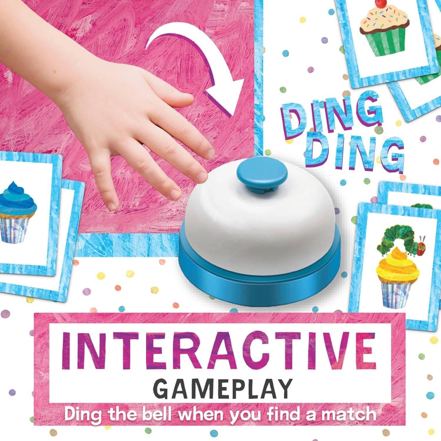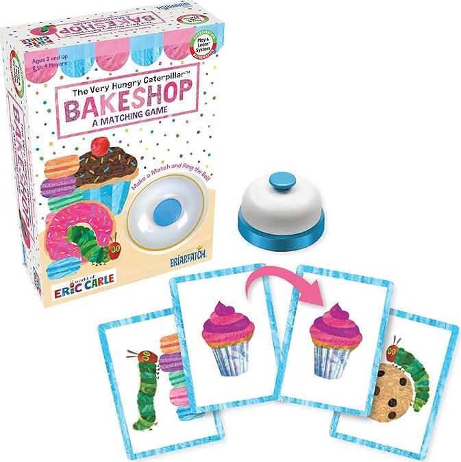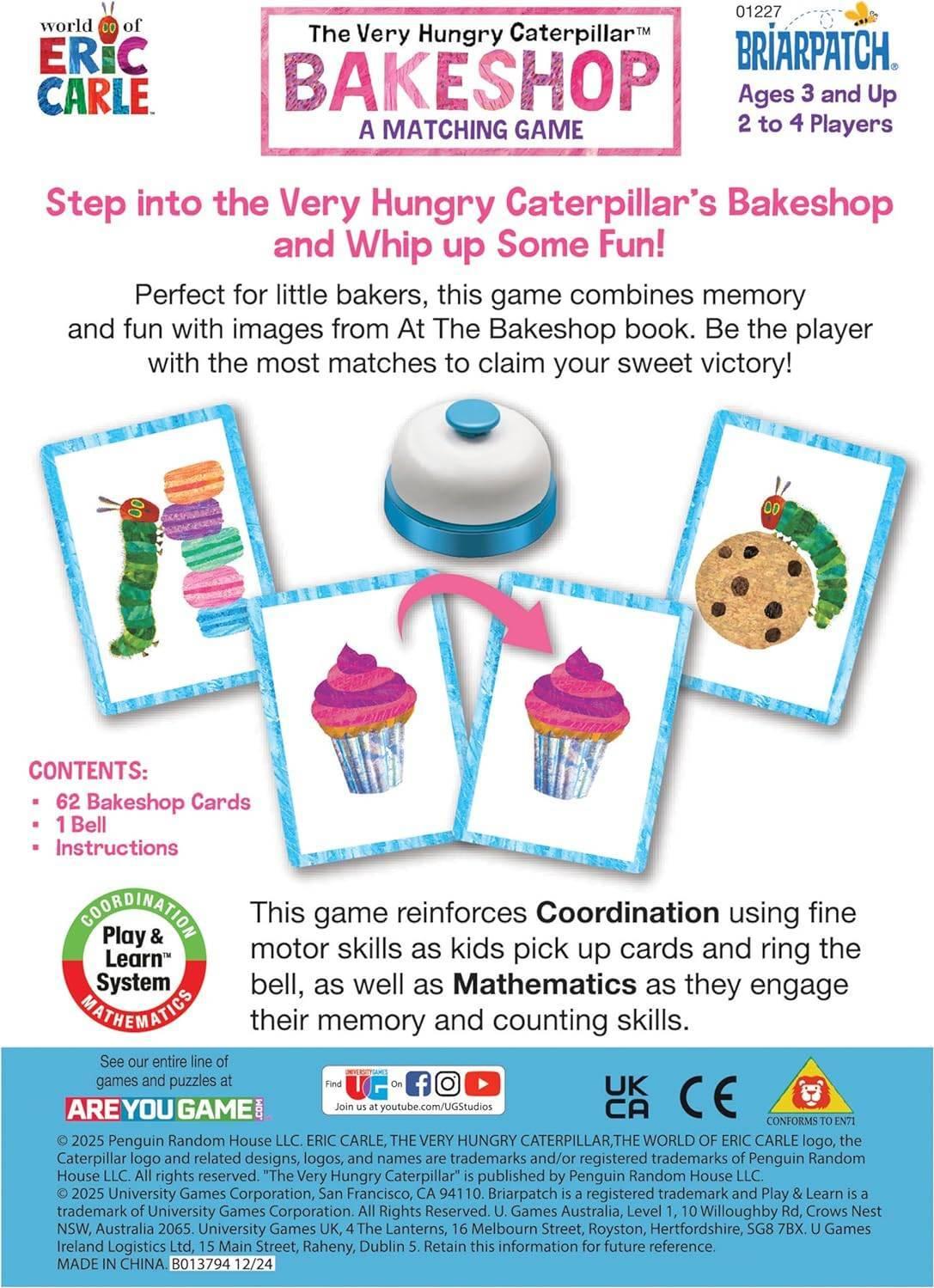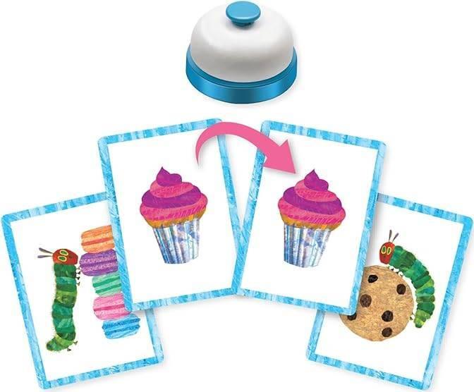 The Very Hungry Caterpillar Bake Shop is an engaging and educational game for preschoolers ages 3 and up. Inspired by Eric Carle’s beloved classic, this game brings the joy of baking to a playful environment where young children can develop their memory and matching skills. Players take turns flipping colorful Bake Shop cards, racing to ring the bell when they find a match. Each match includes the number of baked goods on the card, adding a layered learning aspect to the game for a parent/guardian and child.The game is perfect for 2 to 4 players, making it an ideal activity for family game nights or classroom play. The simple setup and easy-to-follow rules ensure that even the youngest players can jump in and start having fun. With Very Hungry Caterpillar Bake Shop, children enjoy a delightful play experience and strengthen critical cognitive and social skills in a creative and hands-on way.*Features:** 2–4 Players* 10–15mins* Ages 3