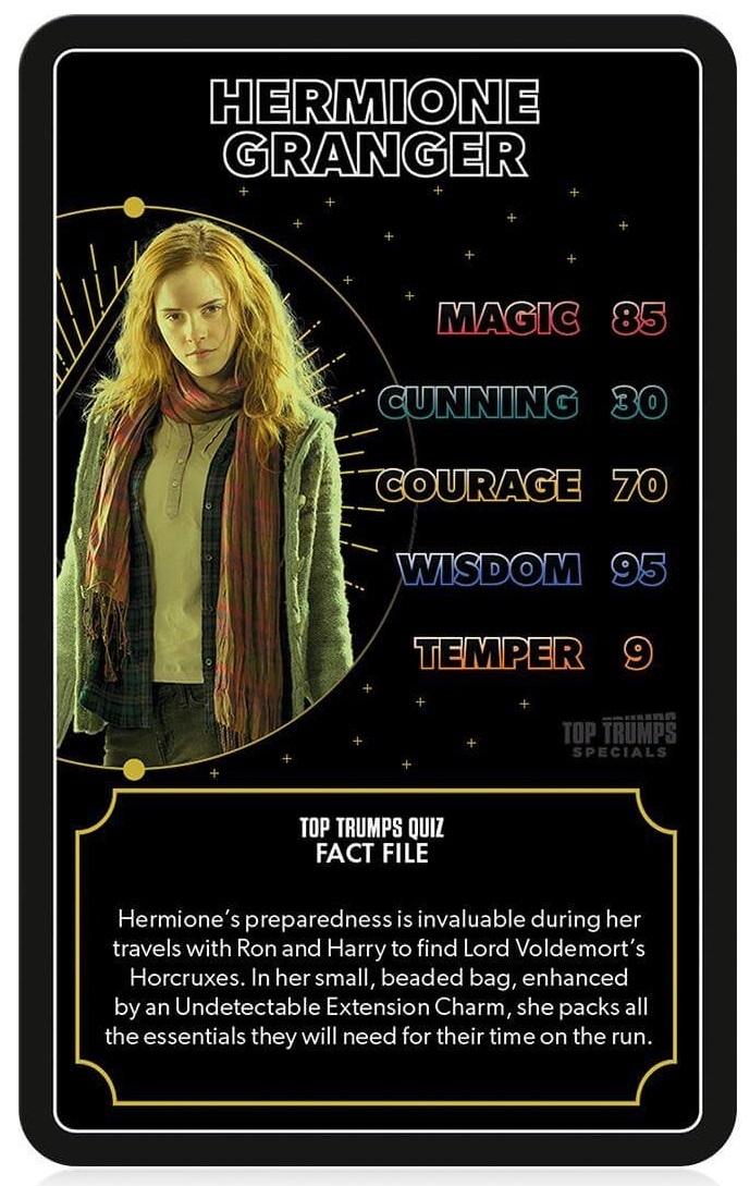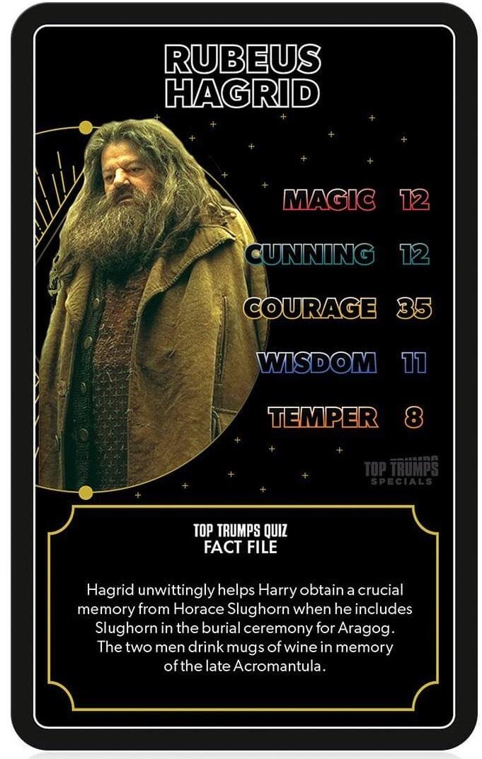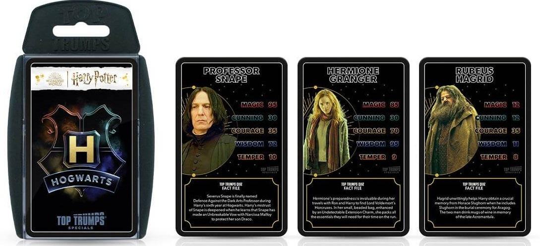 *The Wizarding World rises against the forces of the Dark Arts in this new Heroes of Hogwarts edition of Top Trumps Specials.*Rediscover the legacy of the beloved school of witchcraft and wizardry with thirty cards depicting some of Hogwarts’ finest students, teachers and defenders. From students like Harry, Ron and Hermione, to professors like Dumbledore, McGonagall and Slughorn, and Order of the Phoenix members like Bill and Molly Weasley, all the finest figures of the Wizarding World are here, ready to take on Lord Voldemort and defend Hogwarts until the very end.Will Fred and George’s Cunning score leave your opponents in a Full Body-Bind, or will Tonks’s Wisdom crush your foes faster than a Whomping Willow? With categories including Magic, Courage and Temper, each card also features a custom bio that tells you everything you need to know about these memorable heroes.So shuffle the cards and deal in your friends: all aboard the Hogwarts Express!*Key Features:** Entertaining, educational card game brings your favourite Hogwarts students and teachers to life* Combine this deck with the Top Trumps Specials: Dark Arts deck for an even bigger game!* Easy-to-carry plastic case makes this a perfect travel or holiday game* Top Trumps is great fun anytime, anywhere, for witches, wizards and muggles alike* Prepare to outsmart your opponents, discover new and exciting magic facts and duel your way to becoming the Top Trump!*Specifications:** *_Product Dimensions:_* 85mm x140mm x20mm* *_Suitable Age:_* 6+* *_Number of Players:_* 2+
