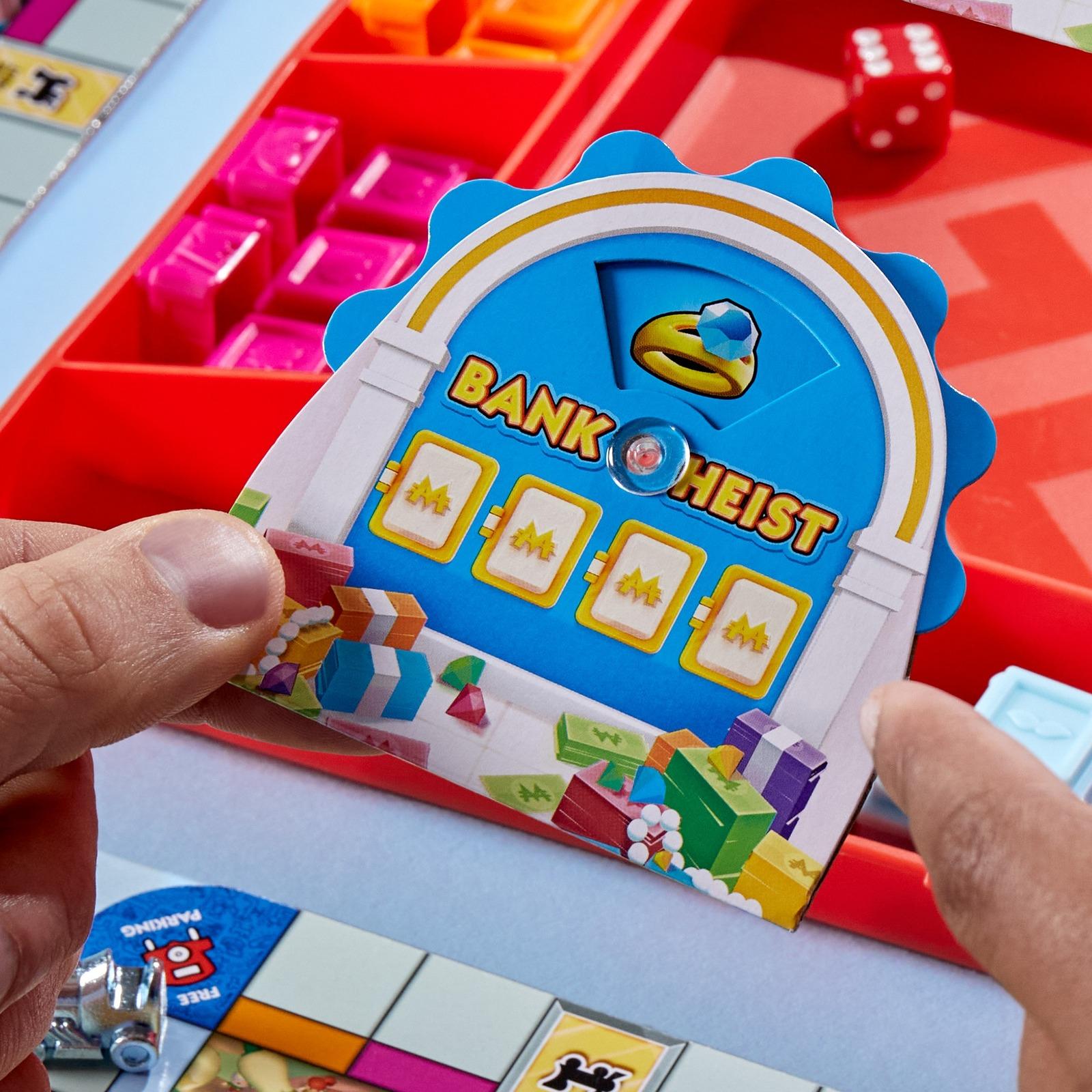 The Monopoly GO! game is what fans love about the popular mobile app game in a social tabletop version! In this thrilling family board game, the first player to build a landmark wins. To get started, each player chooses a mini gameboard with a favorite location, plus a matching-colored die. Then everyone rolls their die and moves that many spaces around their board—at the same time! If a player lands on a color space, they take a landmark block from the tray and add it to their board. Use Bank Heists, Shut Downs, and Mega Shut Downs to sabotage rivals. The first to stack 4 matching-colored landmark blocks on their board wins! Searching for fun family games for kids, teens, and adults? This strategy game is a great choice for anytime play, and it makes a cool gift for kids ages 8+ who love Monopoly board games.*features:** *INSPIRED BY THE #1 MOBILE BOARD GAME:* Play the Monopoly GO! game IRL with friends and family! This Monopoly GO! game offers the addictive fun of the #1 mobile board game of 2023 in a tabletop version* *SIMULTANEOUS FUN IN FAST-PACED ROUNDS:* In each round, players roll dice and everyone moves their token around their own mini board at the same time. Each quick-playing game is about 15 minutes* *RACE TO BUILD A LANDMARK:* There’s no money. Instead, whenever players land on a color space, they place that matching-colored landmark block on their board. Be the first to stack 4 matching-colored blocks to win* *PULL OFF BANK HEISTS AND SHUT DOWNS:* Make mischief with Bank Heists and activate Shut Downs to sabotage rivals! And unlike in the app, players can see their opponents’ reactions* *UNLOCK A FREE DIGITAL TOKEN:* Includes a code for a free token to use in the Monopoly GO! app! (Code can be redeemed 4 times, but only once per account. Code expires Dec. 31, 2025)* *8 EXCITING LOCATIONS:* Choose from 4 double-sided mini gameboards with real and imagined locations, such as New York City, the Roaring 20s, and Unicorn Land* *GREAT TRAVEL GAME FOR ANYTIME PLAY:* This party game for ages 8+ is a fun game for Family Game Night, and because its pieces store in the game tray, it’s an ideal portable game for vacations and on-the-go play*Contents:** Portable Game Tray (with storage area and lid)* 4× Double-Sided Mini Gameboards* 4× Tokens* 4× Dice (1 red, 1 yellow, 1 green, 1 blue)* 40× Plastic Landmark Blocks (5 brown, 5 light blue, 5 pink, 5 orange, 5 red, 5 yellow, 5 green, 5 dark blue)* 10× Chance Tiles* 4× Plastic Mr. Monopoly Markers* 2× Cardboard Bank Heist Dials (with plastic fasteners)* 4× Reference Cards.Ages 8 and up.For 2 to 4 players.