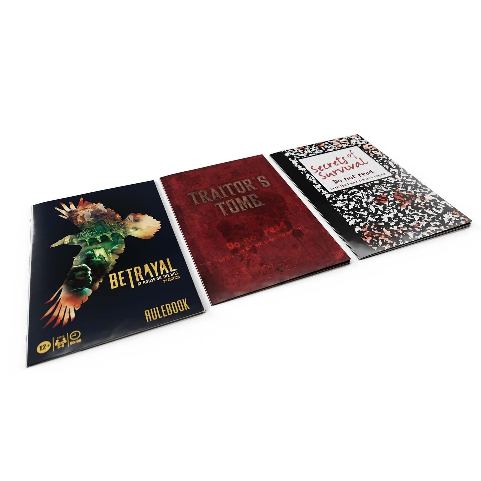 The House on the Hill still sits abandoned, and a fearless group of explorers has been drawn to the house to discover its dark secrets. Immerse yourself in the narrative gameplay as you take on the role of one of those explorers. The Betrayal at House on the Hill 3rd Edition cooperative board game includes 50 chilling haunts and dozens of danger-filled rooms that will terrify even the strongest among you. At first you'll work together, but beware…one explorer will betray the others and then the haunt begins. This edition of the popular haunted house traitor game features content and gaming elements that help new players jump right in. So gather friends for a game night of monsters, miniatures, and modular board pieces in this immersive, story-driven hidden traitor game for 3–6 players, ages 12 and up.*EXCITING THIRD EDITION*This edition of the Betrayal at the House on the Hill game is rich with horror-based content, gaming elements, and characters not seen in previous versions.*HAUNTED HOUSE TRAITOR GAME*Players must work together to survive the nightmare…but beware! The house turns one player against the others in this cooperative strategy game.*GREAT FOR NEW PLAYERS*This 3rd Edition of the game features artwork, rule books, trackers, and cards that will help new players navigate the game and jump right in.*MODULAR BOARD PIECES*The Betrayal at House on the Hill tabletop game features 50 blood-curdling scenarios. Each trip to the house promises fresh horrors and a new story is created every time you play.*MINIATURES BOARD GAME*The game includes 6 finely detailed character figures, each with a removable coloured disc, and features 12 diverse characters not seen in previous editions.*CONTENTS*Includes Traitor's Tome and Secrets of Survival haunt books, 6 double-sided character boards, 6 finely detailed character figures, 6 character figure bases, 30 clips, 8 dice, 74 game cards, 5 Scenario cards, Monster reference card, Traitor reference card, 6 Player reference cards, 3 starting tiles, 42 single room tiles, number track and pointer, 114 cardboard tokens, and rulebook.*The Dice Tower Seal of Approval is a trademark of The Dice Tower, LLC and is used with permission.*