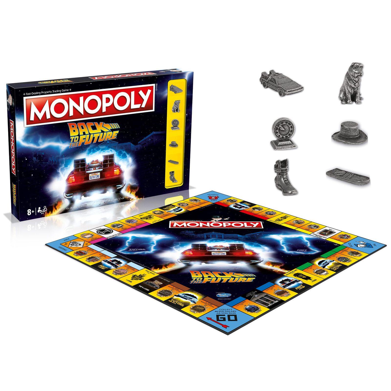 _“If my calculations are correct…” by harnessing 1.21 gigawatts of power, the flux dispersal will send you on a historic journey in Back to the Future Monopoly._Collect the famous locations of Hill Valley from all three films such as the Clock Tower 1885, Doc’s Mansion 1955, and McFly Residence 2015.Buy up your favourite locations, stash Plutonium Rods and Plutonium Cases on your properties to increase their value, and charge your opponents rent to bankrupt them and win the game.Grab a PAST or FUTURE card for an unexpected bonus or penalty, and watch out for the Car Repair and Clocktower Fund spaces that will cost you money.Gather your friends and family and reminisce with this officially-licensed piece of movie history that’s perfect for Monopoly lovers and Back to the Future fans. So roll the dice, grab your token and time travel past GO! (Note: Product does not actually send you through time!)