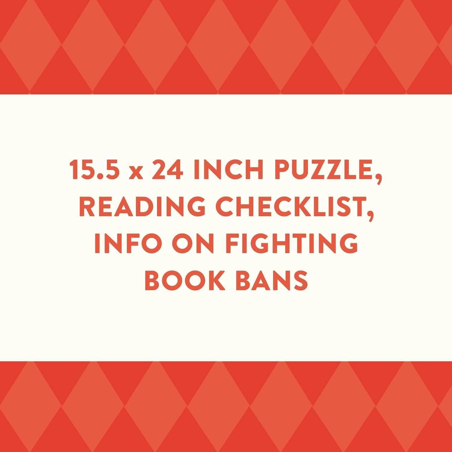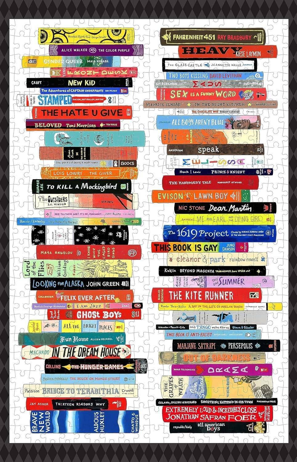 The 500-piece bookstack puzzle is just the right level of challenge for booklovers and puzzlers. When completed, the puzzle measures 15.5 in x 24 in (39.5 cm x 61cm).A useful and fun puzzle for fans of booktok, bookstagram, and booktube, Goodreads users, voracious readers, booklovers, aspiring writers, book club members, librarians, and English teachers as well as fans of Jane Mount and PEN America.*Features:** With over 65 different books that have been banned at one time or another, this puzzle serves as great reading inspiration for anyone looking to subvert the norm, learn about various underrepresented and historically silenced communities, and tap into their inner literary savant.* A percentage of the proceeds from this puzzle will be donated to PEN America, a nonprofit organization devoted to defending and celebrating free expression in the United States and beyond.* 500 Pieces