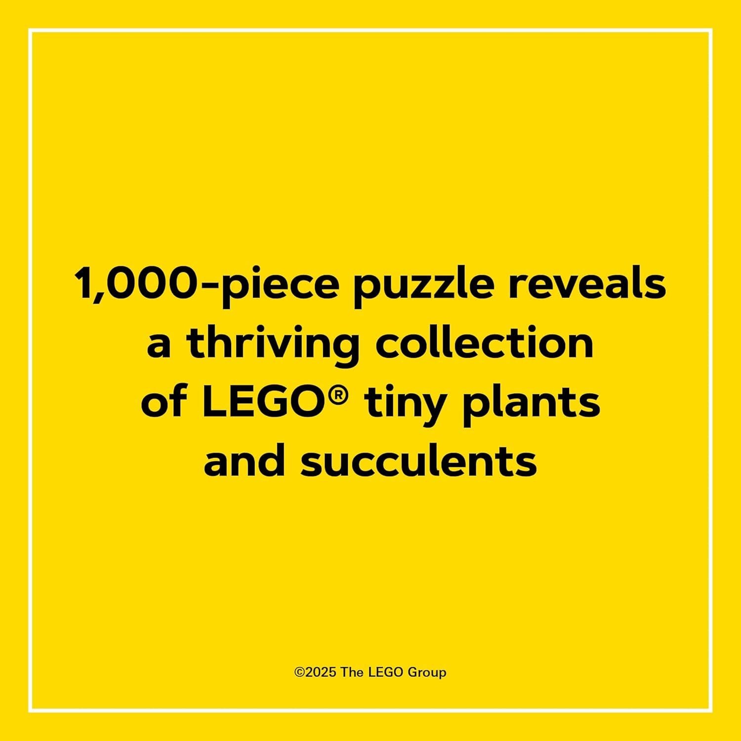 Calling all LEGO puzzlers! The next 1,000-piece puzzle in this beloved linefeatures a thriving collection of tiny LEGO plants and succulents. Perfect forthe whole family but just as fun to take on solo, this puzzle showcases thecreativity and delight integral to the LEGO brand.