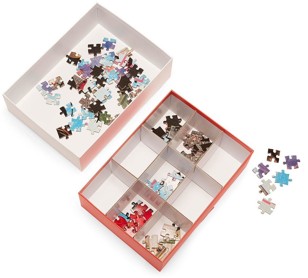 Includes easy-to-assemble nine-compartment sorting tray to organise the puzzlepieces inside the box.