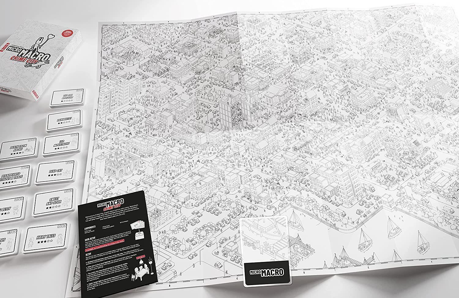 Immerse yourself in the world of crime investigation with MicroMacro: Crime City, the addictive board game that will put your detective skills to the test! With a giant city map (75 × 110 cm), you'll become a sleuth to find all the hidden information and trace the trails of those who committed crimes all over the city.MicroMacro: Crime City includes 16 unique cases that will challenge your investigative abilities. Each case consists of a series of cards that ask you to find something on the map, uncover where someone has gone, or reveal other information relevant to the case. The map serves as both a map in space and time, so you'll typically find people in multiple locations throughout the city, and you need to piece together what happened. Will you be able to solve all the cases and become the master detective?With its easy-to-learn rules and addictive gameplay, MicroMacro: Crime City is the perfect game for both solo play or group fun. The game includes a game map, crime and player cards, and a rules guide. Get ready to put your investigative skills to the test and become a master detective!*The Dice Tower Seal of Approval is a trademark of The Dice Tower, LLC and is used with permission.*