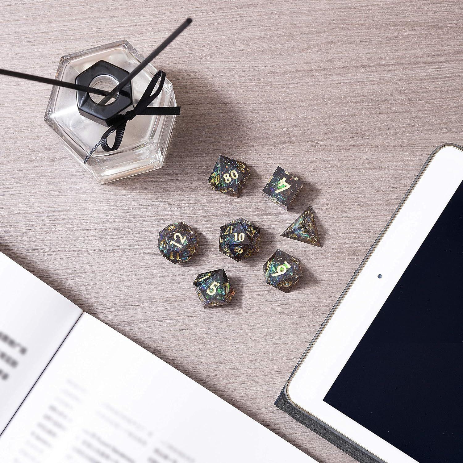 *Dudley's Gallery – Shimmering Galaxy Sharp Edge Resin Dice Set**Crafted from high-quality resin*Each die boasts crisp, sharp edges and vibrant colours reminiscent of a shimmering galaxy. As part of Dudley the dragon's exclusive gallery collection, these resin dice bring not only precision to your rolls but also the enchantment of a dragon's treasure.*Sharp Edge Resin Craftsmanship:*Each die is meticulously crafted with sharp edges, ensuring a distinct look and feel that enhances your gaming experience.*Vibrant Galaxy Colours:*Each die features mesmerizing colours that evoke the beauty of a shimmering galaxy, adding an otherworldly charm to your table top adventures.*Gallery Collection:*This set is part of Dudley's pres­tigious gallery collection, ensuring that each die is a work of art worthy of display.*Versatile Use:*Ideal for a variety of table top games, RPGs, and D&D campaigns. Whether you're a dungeon master or a player, Dudley's Shimmering Galaxy Sharp Edge Resin Dice Set will enhance your gaming experience.*Easy-to-Read Numbers:*Each die features large, easy-to-read numbers, ensuring quick and hassle-free gameplay.*Packaging:*These dice are elegantly packaged in a sturdy and reusable storage box, ensuring your dice are safely stored and ready for your next gaming adventure.*Dudley's Gene­rosity:*Imagine the thrill as you roll Dudley's Shimmering Galaxy Sharp Edge Resin Dice Set, a treasure from his prestigious gallery collection. Let the magic of dragons infuse your gameplay as you unveil the vibrant colours of his prized possession with each roll.Want to display this beautiful set the right way? Check out the *[BrickFans Premium Dice Display Case](https://www.mightyape.co.nz/product/brickfans-premium-dice-display-case/39153460)**Technical Specifications**Set Includes:*1 x D4 (Four-sided die)1 x D6 (Six-sided die)1 x D8 (Eight-sided die)1 x D10 (Ten-sided die)1 x D10 percentile (Ten-sided die marked in tens)1 x D12 (Twelve-sided die)1 x D20 (Twenty-sided die)1 x Storage Box*_Note: As each die is crafted from resin, slight variations in colour and pattern may occur, adding to the unique charm of each set._*