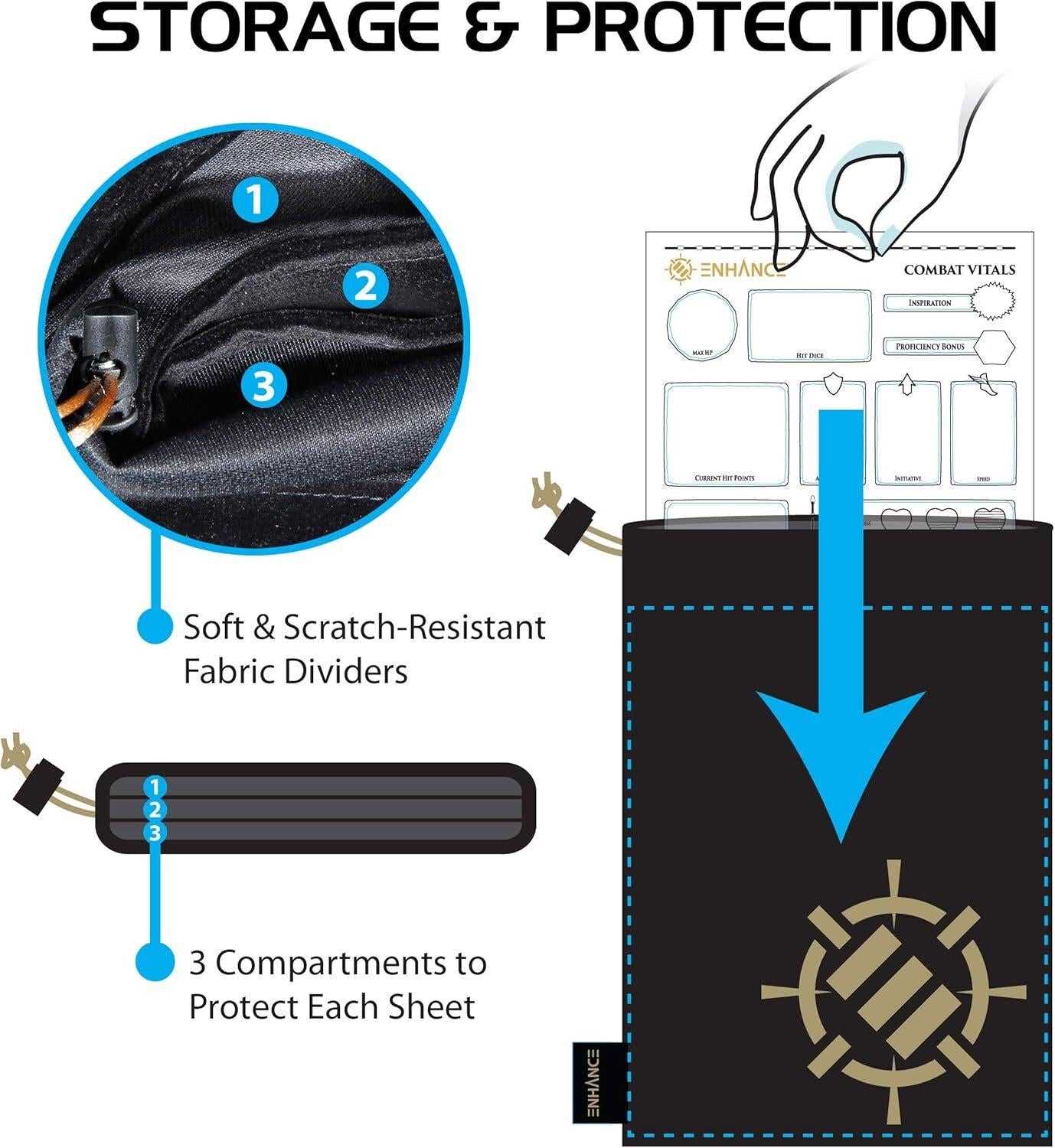 The Acrylic Character Sheet Set includes three 8" x 6" sheets that enable tracking of resources and abilities on erasable templates that will outlast your longest campaign adventures.The Acrylic Sheets (“Combat Vitals” for combat encounters, “Equipment” for inventory, and “Spells & Abilities” to track spell slots, magical/class resources) were designed specifically for use with DnD 5e. The set also includes four Dry Erase Markers and a Drawstring Storage Pouch.*Features:** Incudes Dry Erase Markers & Storage Pouch* Re-usable Character Sheets (x3)* Made from durable materials