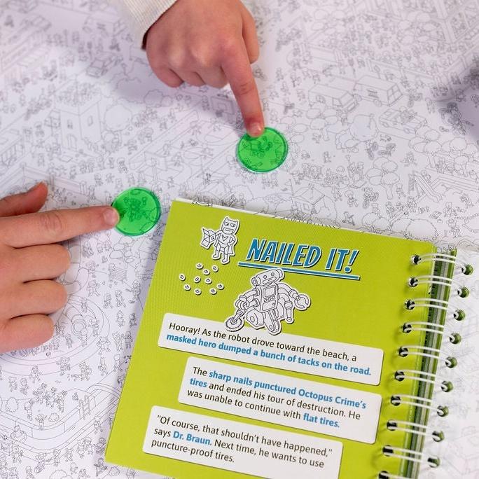 *MicroMacro: Kids – Crazy City Park*Introducing a family-friendly spin on the best-selling and 2021 Spiel des Jahres winning game MicroMacro. This family-friendly version introduced a spiral notebook instead of cards to keep the cases organized for little gamers, and transparent tokens for families to track characters across the map.In MicroMacro you are investigators. Mysterious things are happening on the huge hidden picture map:How did the dinosaur bone disappear?Who can stop the raging robot before it devastates the entire city?And how did the diamond thief escape from the police?To solve these cases, you will work together as a team. You will follow clues, solve puzzles, and pursue suspects – just like real detectives!*Features:** Players: 1–4* Playtime: 15–45 Minutes* Ages: 6+