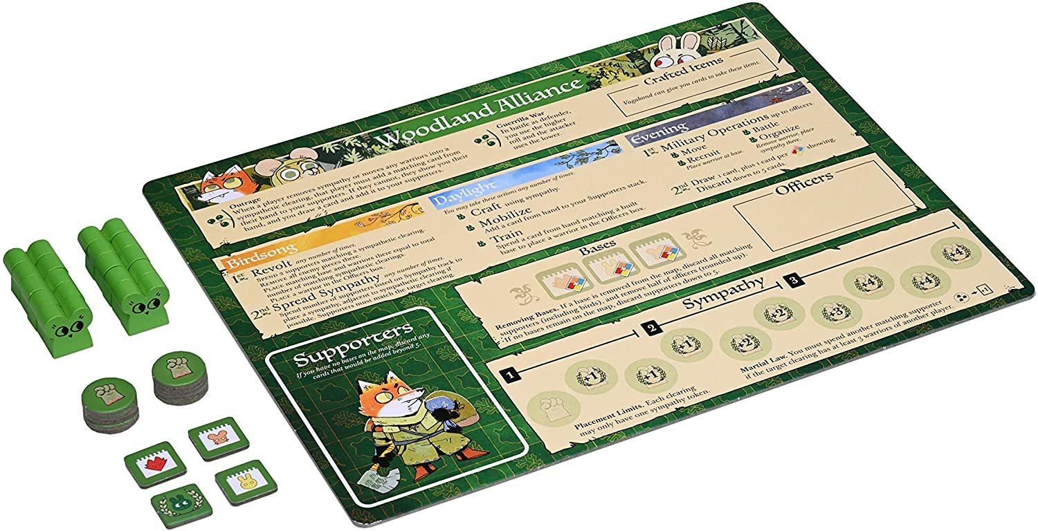 Root is a game of adventure and war in which 2 to 4 (6 with the ‘Riverfolk’ expansion) players battle for control of a vast wilderness.The nefarious Marquise de Cat has seized the great woodland, intent on harvesting its riches. Under her rule, the many creatures of the forest have banded together. This Alliance will seek to strengthen its resources and subvert the rule of Cats. In this effort, the Alliance may enlist the help of the wandering Vagabonds who are able to move through the more dangerous woodland paths. Though some may sympathize with the Alliance’s hopes and dreams, these wanderers are old enough to remember the great birds of prey who once controlled the woods.Meanwhile, at the edge of the region, the proud, squabbling Eyrie have found a new commander who they hope will lead their faction to resume their ancient birthright. The stage is set for a contest that will decide the fate of the great woodland. It is up to the players to decide which group will ultimately take root.Root represents the next step in our development of the asymmetric design. Like Vast: the Crystal Caverns, each player in Root has unique capabilities and a different victory condition. Now, with the aid of gorgeous, multi-use cards, a truly asymmetric design has never been more accessible.The Cats play a game of engine building and logistics while attempting to police the vast wilderness. By collecting Wood they are able to produce workshops, lumber mills, and barracks. They win by building new buildings and crafts.The Eyrie musters their hawks to take back the Woods. They must capture as much territory as possible and build roosts before they collapse back into squabbling.The Alliance hides in the shadows, recruiting forces and hatching conspiracies. They begin slowly and build towards a dramatic late-game presence–but only if they can manage to keep the other players in check.Meanwhile, the Vagabond plays all sides of the conflict for their own gain, while hiding a mysterious quest. Explore the board, fight other factions, and work towards achieving your hidden goal.In Root, players drive the narrative, and the differences between each role create an unparalleled level of interaction and replayability. Leder Games invites you and your family to explore the fantastic world of Root!*The Dice Tower Seal of Excellence is a trademark of The Dice Tower, LLC and is used with permission.*