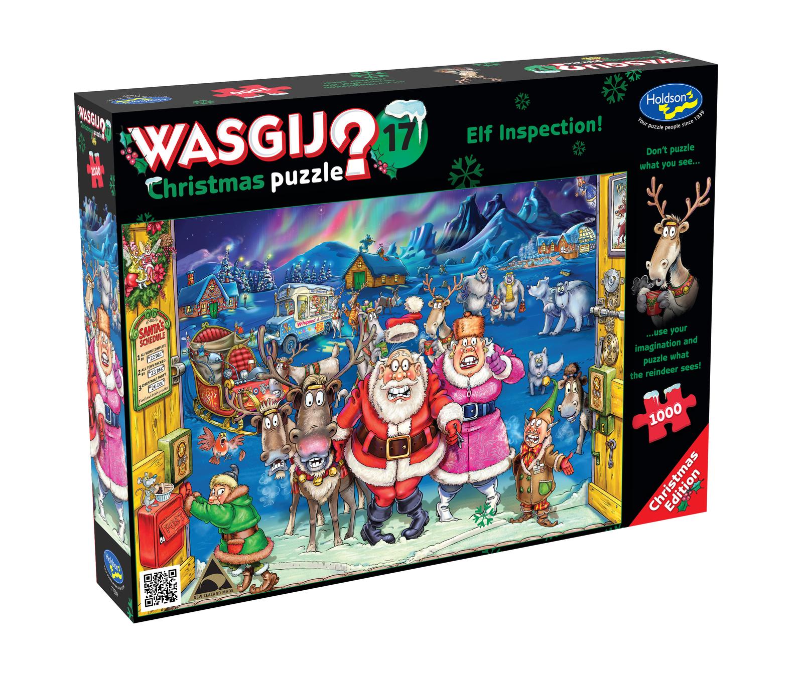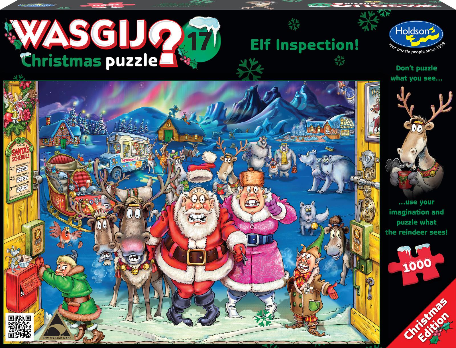 Christmas is just around the corner and the residents of the North Pole are busy preparing for the most magical night of the year. But when Santa and Mrs Claus pay a visit to the elves’ workshop, no one can believe their eyes at the scene they find inside. Something has left them shocked, and it looks like the naughty list is about to get an awful lot bigger! What could have caught the eye of Santa’s reindeer just as they were about to warm up with a hot drink? That is the image you need to puzzle.Approximate puzzle size 688×493mm.Manufactured in New Zealand by Holdson.Suitable for ages 8+ years.