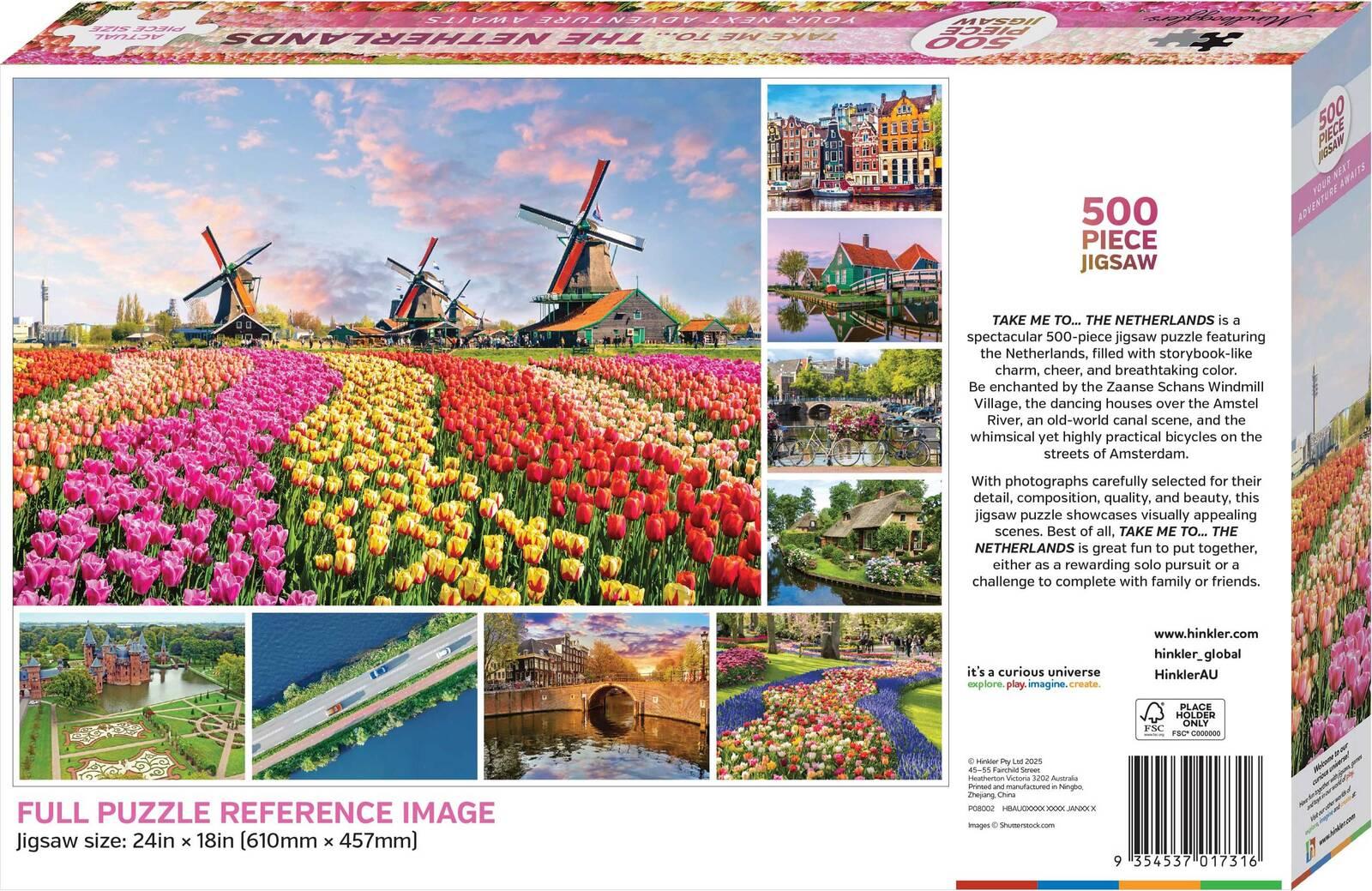 Transport yourself to a blooming paradise with the Mindbogglers 500pc Jigsaw Take Me to the Netherlands.This vibrant puzzle showcases a breathtaking field of colorful tulips stretching as far as the eye can see, set against the iconic Dutch countryside. A delightful and refreshing challenge for nature and travel enthusiasts alike.*Features:** 500 Pieces of high quality puzzle* A stunning picture to put together* The perfect way to relax
