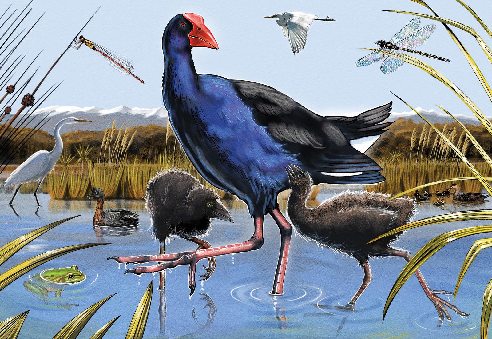 The 300 extra large piece jigsaw puzzles are suitable for ages from 8 years to 98 years old! This third series of “Treasures of Aotearoa” celebrates more of New Zealand's native bird life. There are 4 gorgeous scenes in this jigsaw puzzle series to choose from, or collect them all. Puzzle dimensions approximately 343mm x 496mm. Artist Ned Barraud studied art at Victoria University, and has since illustrated many children's books and journals, including seven non-fiction titles in Potton & Burton's highly successful “Explore and Discover” series, as well as “Animals of Aotearoa”. Made in New Zealand by Holdson. Suitable for ages 8yrs+. Puzzle dimensions: 343mm x 498mm approximately. Puzzle box size: 270mm x 370mm.