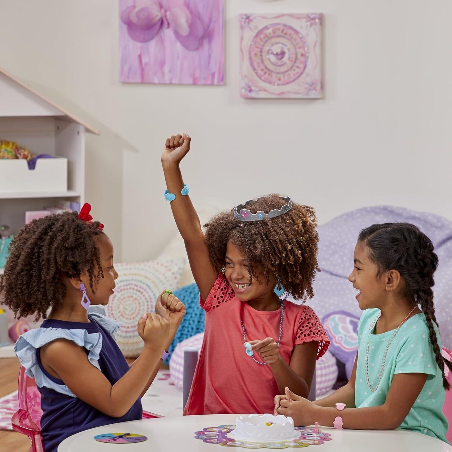 *Pretty Pretty Princess*It's the classic jewelry dress-up game you might remember playing as a child. Now you can introduce your own kids to this this classic board game. Players move their pawns around the gameboard collecting a set of jewelry in their chosen color.Land on a necklace, earring, bracelet, or ring space? Choose that piece and put it on…but watch out for the Cursed Ring! A player wearing the Cursed Ring can't win the game while wearing it! The first player to collect a complete set of plastic jewelry pieces in their color plus the crown wins the game! What a fun game for kids! It makes a great birthday gift or holiday gift for kids ages 5 and up.*Features:** Players: 2–4* Playtime: 20 Minutes* Ages: 5+