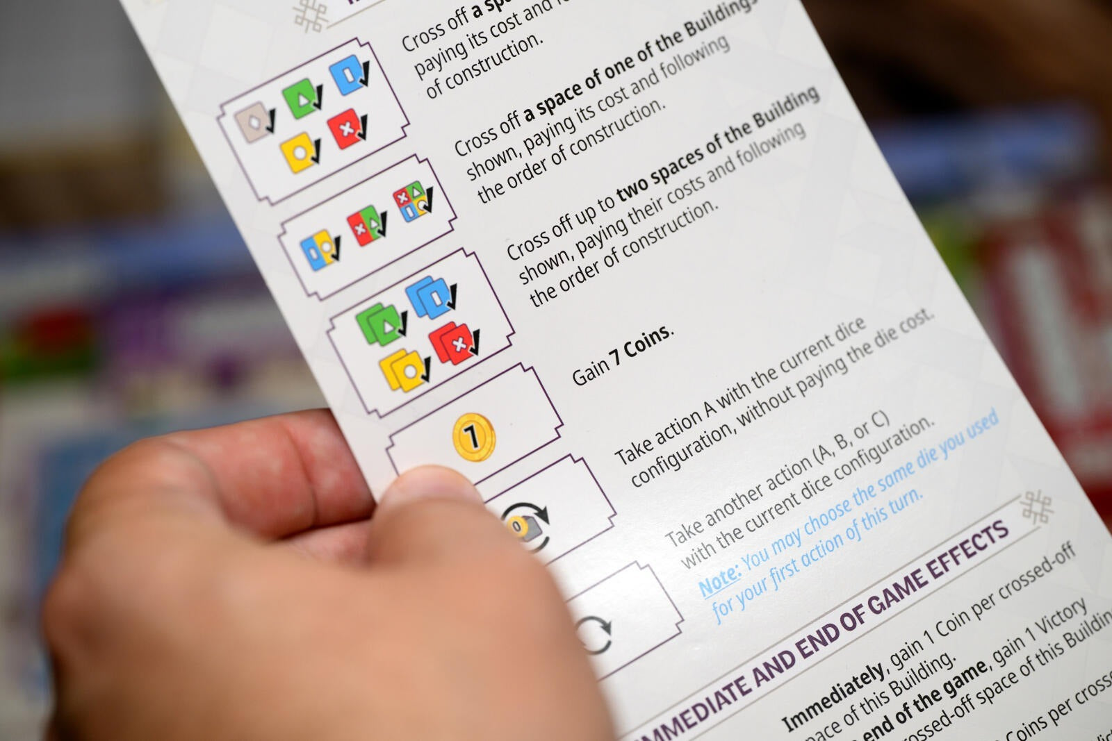 During the game, you will construct a wonder that defies time, makescientific advances, develop commerce, manage your resources, and handle yourgold reserve prudently — all while keeping an eye on neighboring cities sinceignoring them has a heavy price! A game plays over a series of turns duringwhich you will use dice to construct your city. At the end of the game, count upall of your points to see who has the highest score.