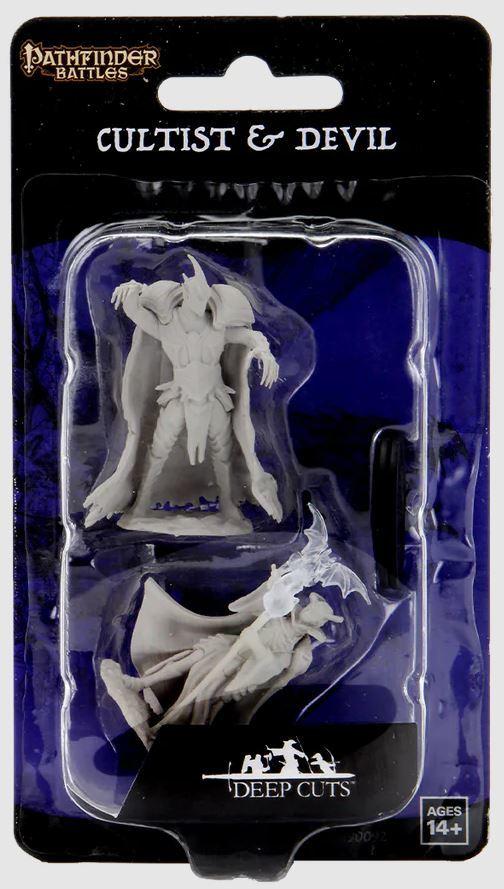 *Pathfinder Deepcuts: Cultist & Devil*Pathfinder Battles Deep Cuts come with highly-detailed figures, primed and ready to paint out of the box. These fantastic miniatures include deep cuts for easier painting. The packaging displays these miniatures in a clear and visible format, so customers know exactly what they are getting.*Key Features:** Features characters, monsters, and scenery* Little to no assembly required* Primed and ready to paint* Some miniatures include translucent parts