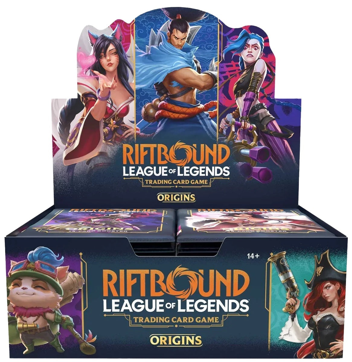 Origins, the debut set of Riftbound: League of Legends TCG, brings Championsto the battlefield like never before! Open 14-card booster packs to access apool of nearly 300 cards featuring art from a variety of legendary League ofLegends artists. Will you pull an epic game-changer, a stunning alt art card, ora pack loaded with power?