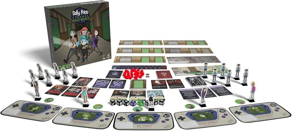 Enter Addison Apartments, a peaceful home to ghosts, cultists, corruption, & more.It includes four engaging stories to immerse you into the world of Sally Face.The new cooperative tabletop game reimagines the massive award-winning video game as a fun and exciting tabletop game. You’ll work with your friends to uncover secrets and unveil the truth as you explore the Addison Apartments, working through each of the four intriguing and unique storylines included with the game, facing events and characters that echo and expand upon the video game.You and your friends will roll dice, solve mysteries, avoid cops and spirits, and investigate strange happenings in the apartment building. You’ll always need to keep one eye over your shoulder though, or else corruption will overwhelm you as the Red Eyed Demon lurks in the shadows…Do you have what it takes to overcome these Strange Nightmares?*Features:** Players: 1–5* Playtime: 45–60 Minutes* Ages: 13+*Contents:** 4× Replayable Stories* 107× Story Cards* 24× Mystery Cards* 35× Finale Cards, 25× Item Cards* 15× Floor Ability Cards* 5× Standard and Upgraded Starting Item Cards* 5× Curse Cards* 18× Enemy Standees* 5× Characters Standees* 5× Character Boards* 10× Character Charge Tokens* 9× Floor/Location Tiles* 1× Corruption Tracker w/ 1× Corruption Token and 1× Consecration Tokens* 6× Ability Dice* 1× Insanity Die and 1× Ghost Die* 40× Progress Cubes* 1× Rulebook