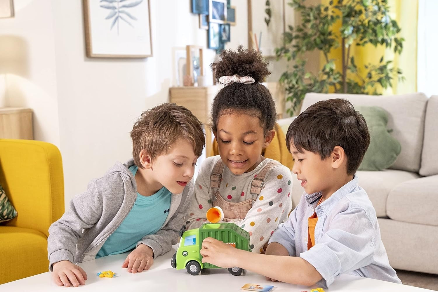 Cool trash truck mechanism creates realistic experience – just turn hisarm and watch the trashcan go up to dump the garbage into the truck.