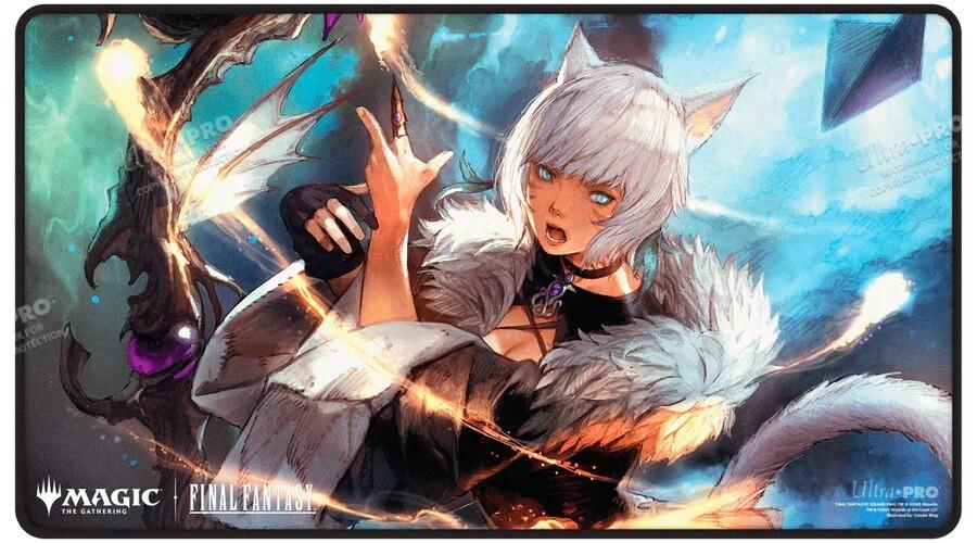*Magic: The Gathering x Universe's Beyond – Final Fantasy*Black Stitched Playmats feature popular Magic: The Gathering®—FINAL FANTASY™ Y'shtola Rhul artwork, and black stitched edges offer an added premium feel. Made with a soft fabric top to reduce damage to cards during play and a non-slip rubber backing to keep the playmat from shifting during use, playmats enhance the gameplay experience. With dimensions of approximately 24 in. x 13.5 in., a playmat also makes an excellent oversize mousepad for home or office.*Features:** Officially licensed Magic: The Gathering®—FINAL FANTASY™ Stitched Edge Playmat* Features exclusive artwork of Y'shtola Rhul by Yusuke Mogi* Approximately 24 in. x 13.5 in. and lies flat* Black stitched edges offer an added premium feel* Non-slip rubber backing keeps the playmat from shifting during use