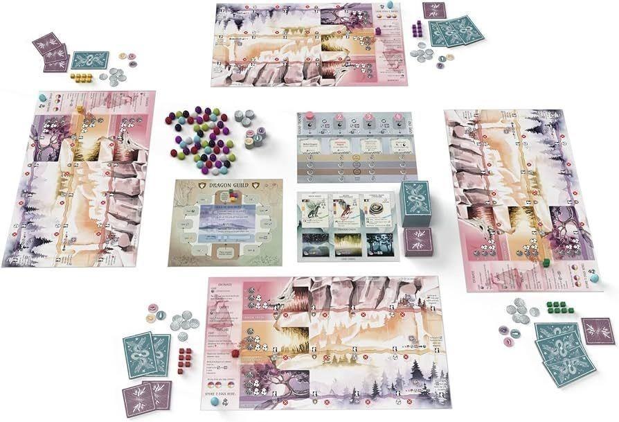 You are an amateur dracologist in the world of Wyrmspan, a place where dragons of all shapes, sizes, and colors roam the skies. Excavate a hidden labyrinth you recently unearthed on your land and entice these beautiful creatures to roost in the sanctuary of your caves.During a game of Wyrmspan, you will build a sanctuary for dragons of all shapes and sizes. Your sanctuary begins with 3 excavated spaces—the leftmost space in your Crimson Cavern, your Golden Grotto, and your Amethyst Abyss. Over the course of the game, you will excavate additional spaces in your sanctuary and entice dragons to live there, chaining together powerful abilities and earning the favor of the Dragon Guild.Wyrmspan is inspired by the mechanisms of Wingspan, though its unique elements make Wyrmspan a standalone game (not compatible with Wingspan). It plays up to 5 players, and it is flexible in size for various tables due to 3 smaller central boards (instead of a single big game board). Each player mat is 475×290mm.*Features:** 1–5 Players* 90mins* Ages 14+